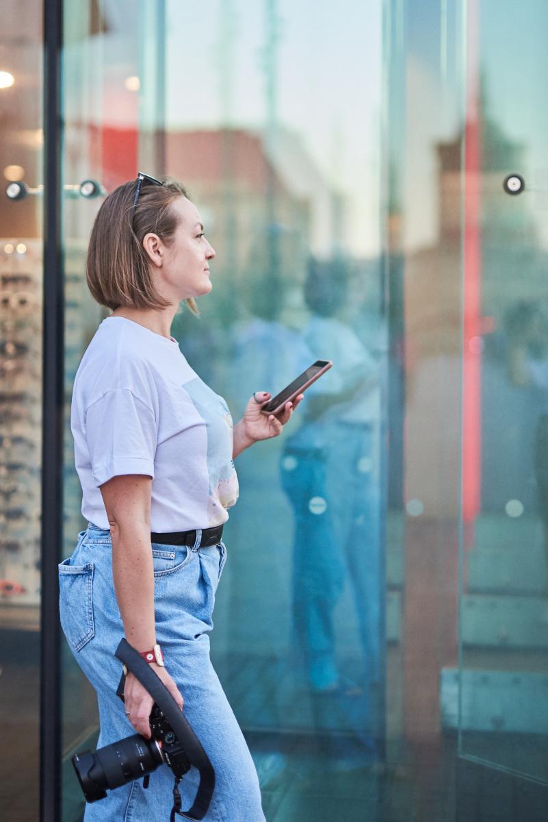 Живые эмоциональные фотографии в стиле лайф-стайл. Фотограф в городе, в процессе работы. Задача показать дружественность, открытость, легкость, позитивные эмоции и любовь к своему делу.