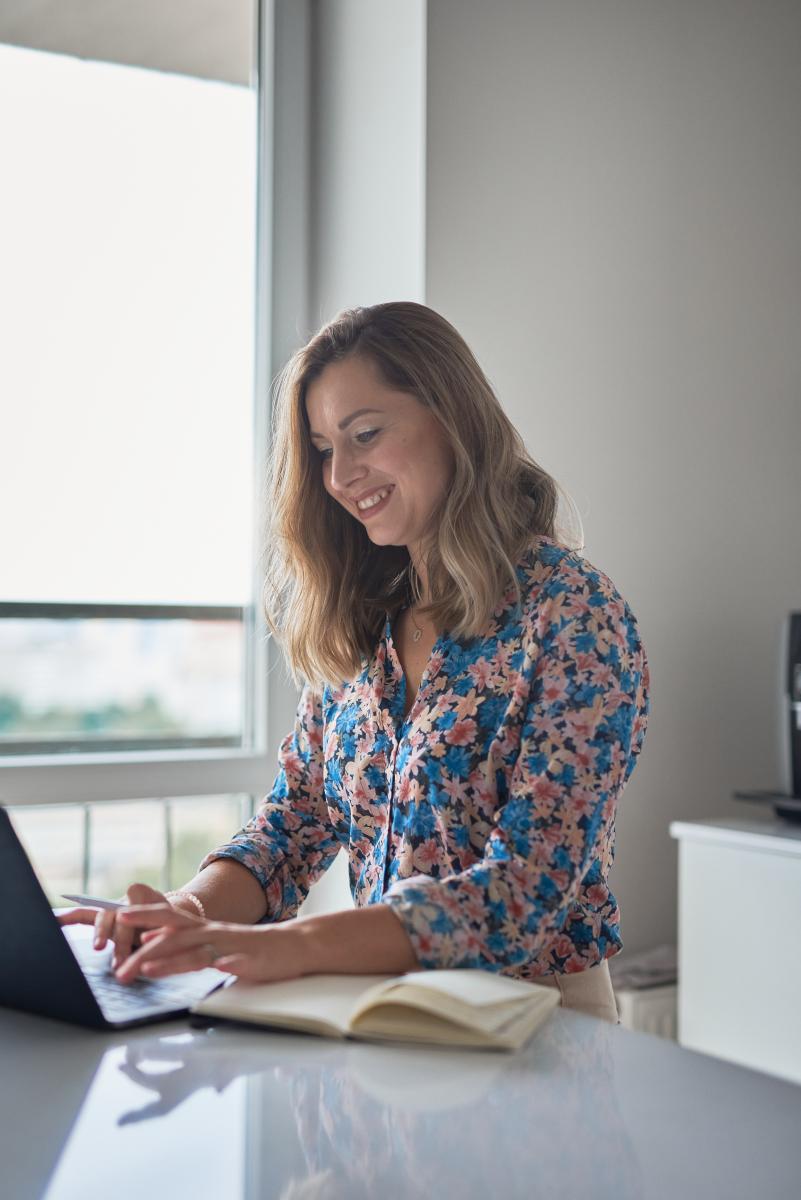 У этого образа задача подчеркнуть деловой стиль, но при этом важны дружественность и позитив; взгляд в камеру - важно для рекламы, подчеркивает открытость эксперта; фотографии с ноутбуком; за столом; кадры "в работе", в процессе составления планов, переписки с клиентами.